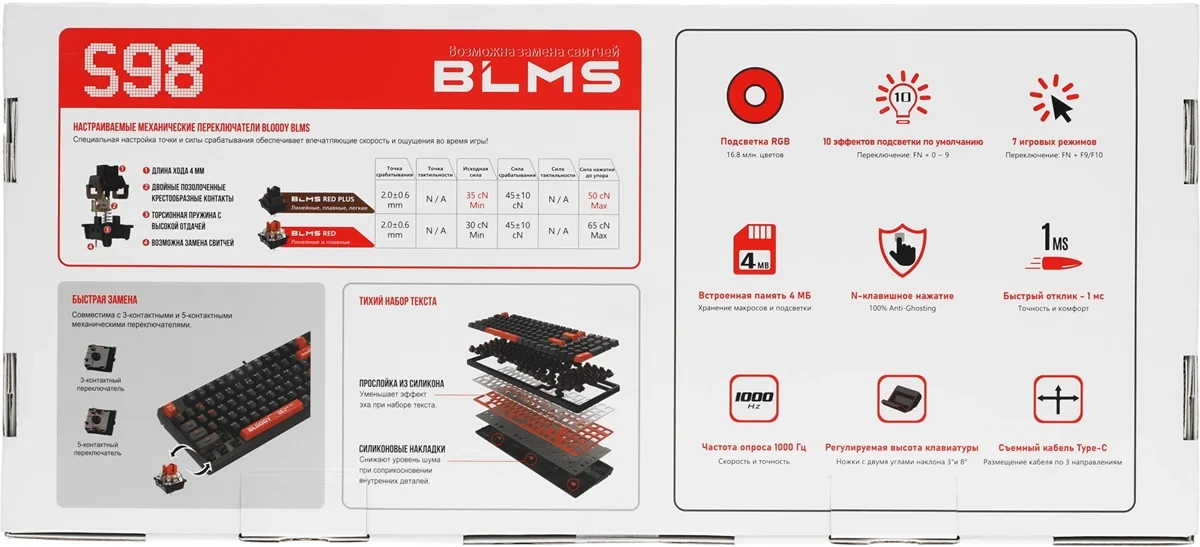 Клавиатура A4Tech Bloody S98 механическая черный/красный USB for gamer LED (S98 RED)