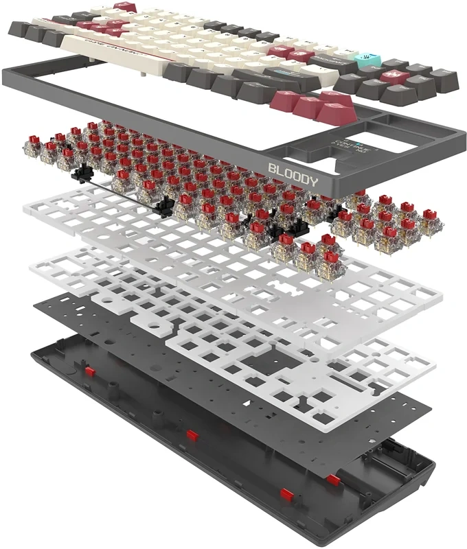 Клавиатура A4Tech Bloody WS87 механическая серый/красный USB беспроводная BT/Radio Multimedia for ga