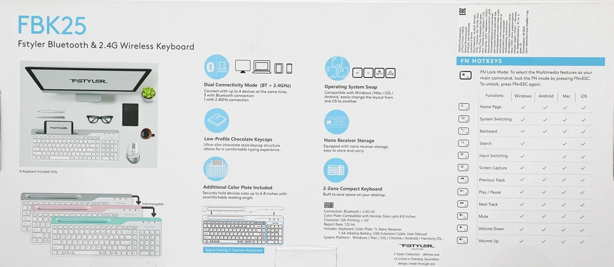 Клавиатура A4Tech Fstyler FBK25 белый/серый USB беспроводная BT/Radio slim Multimedia