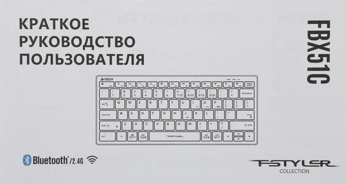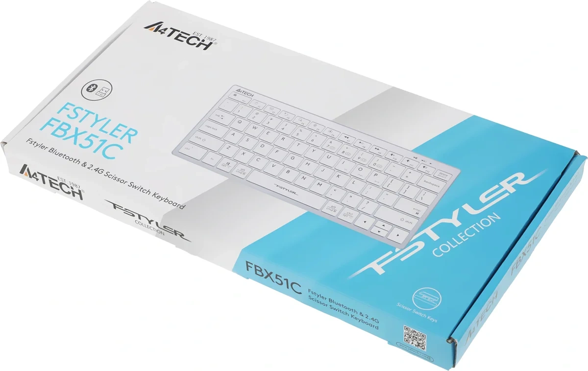 Клавиатура A4Tech Fstyler FBX51C белый USB беспроводная BT/Radio slim Multimedia для ноутбука (FBX51