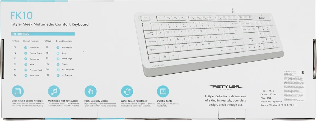 Клавиатура A4Tech Fstyler FK10 белый/серый USB (FK10 WHITE)