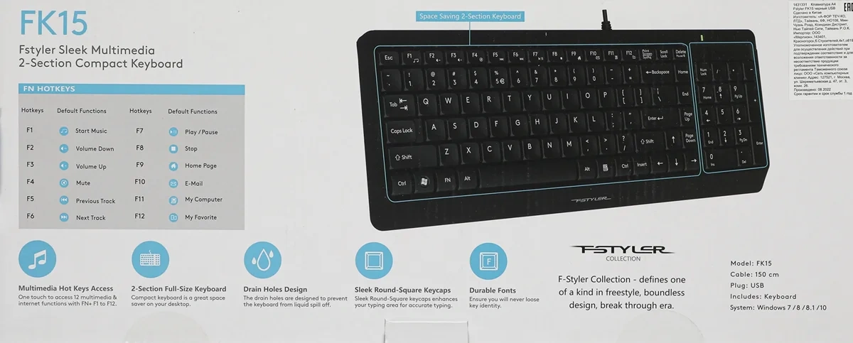 Клавиатура A4Tech Fstyler FK15 черный USB (FK15 BLACK)