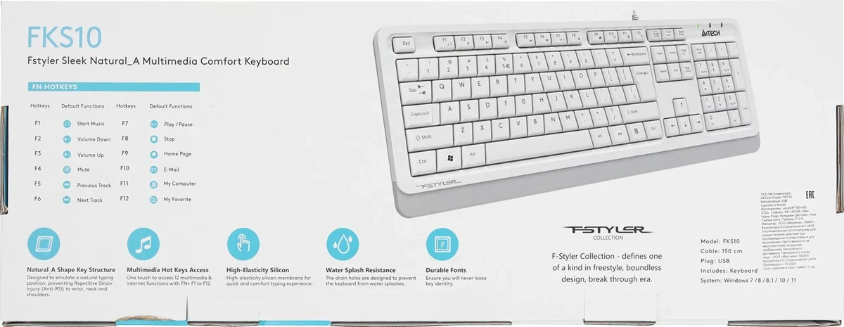Клавиатура A4Tech Fstyler FKS10 белый/серый USB (FKS10 WHITE)