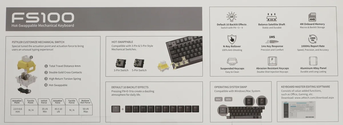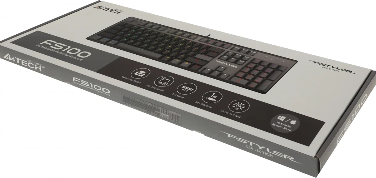 Клавиатура A4Tech Fstyler FS100 Neon механическая черный USB for gamer LED (FS100)