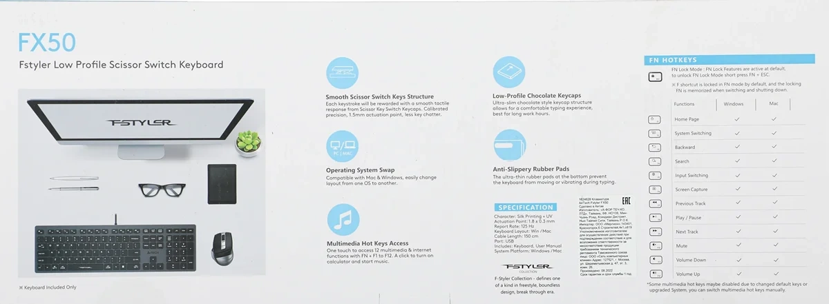 Клавиатура A4Tech Fstyler FX50 серый USB slim Multimedia (FX50 GREY)