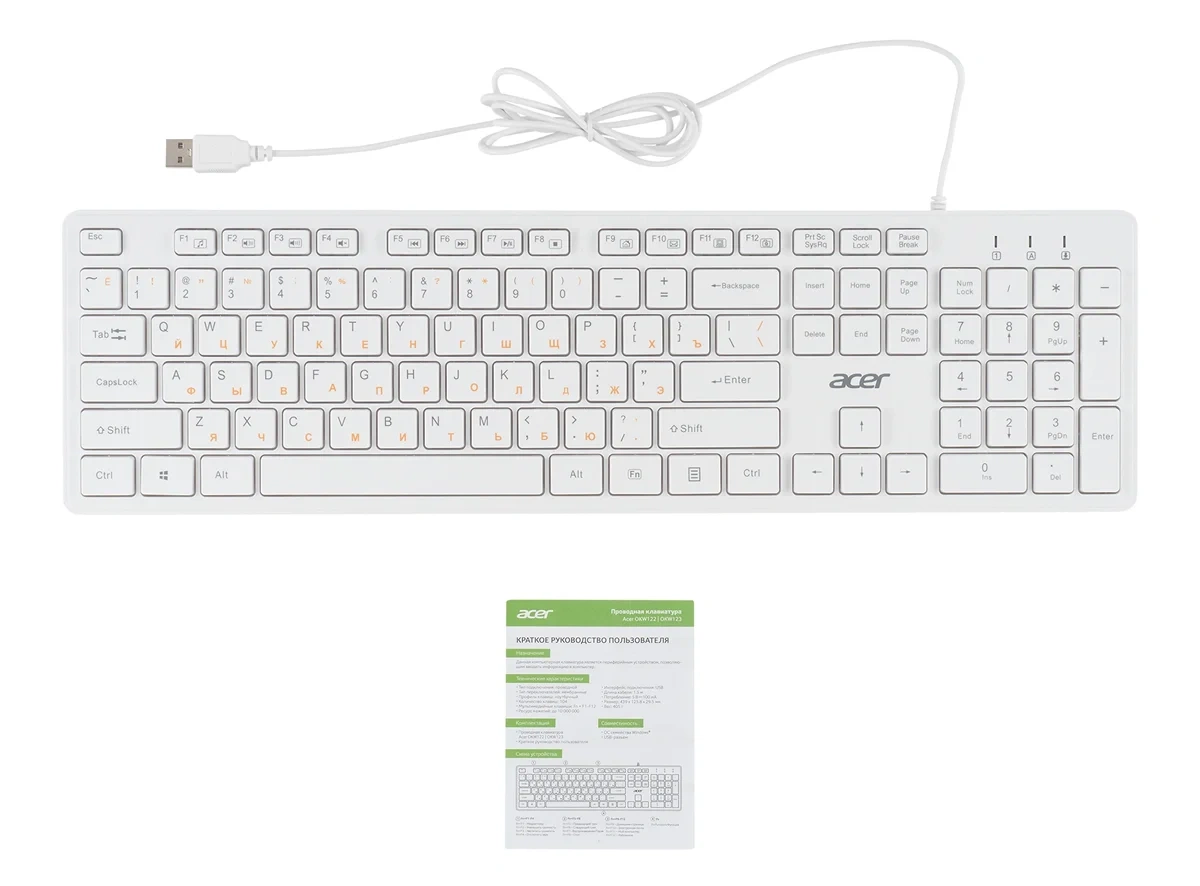 Клавиатура Acer OKW123 белый USB Multimedia (ZL.KBDEE.00D)