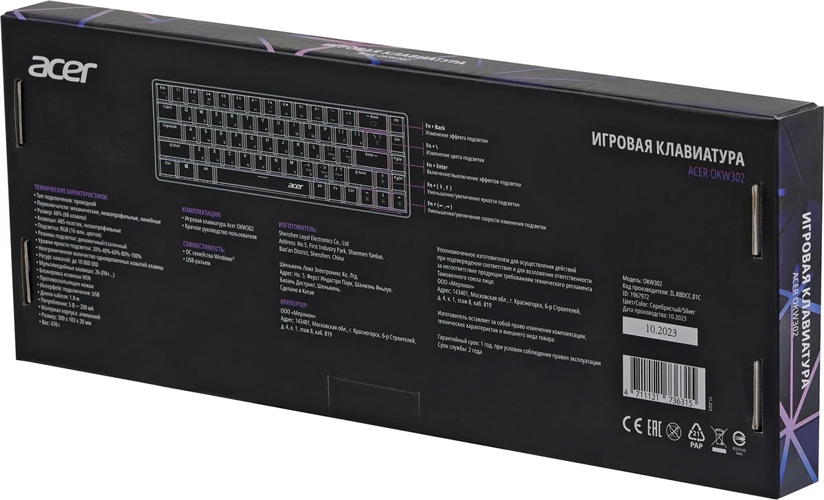 Клавиатура Acer OKW302 механическая серебристый USB Multimedia for gamer для ноутбука LED (ZL.KBDCC.