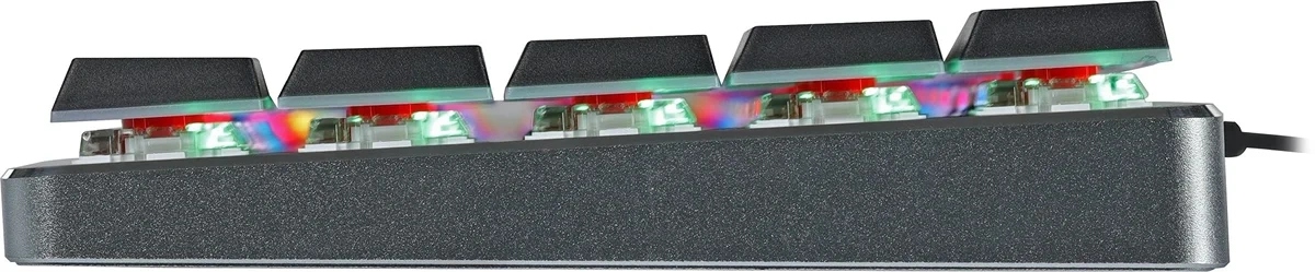 Особенностимеханическая клавиатура с низкопрофильными свичами. алюминиевый корпус с резиновыми противоскользящи