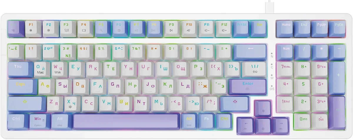| Цвет клавиш | белый, голубой, фиолетовый |