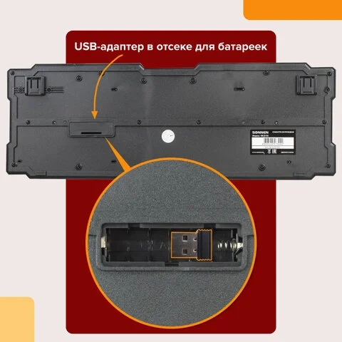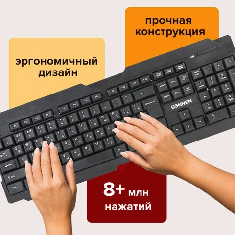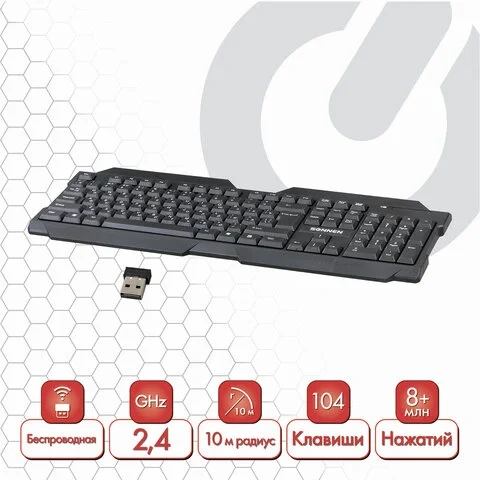 Беспроводная мультимедийная клавиатура SONNEN KB-5156 с эргономичным дизайном, позволит стать независимым от лишних проводов. Для начала работы необходимо просто установить наноресивер в свободный USB-порт компьютера или ноутбука. Характеристики Тип клавиатуры: беспроводная Bluetooth Назначение: для ПК Интерфейс: USB Радиус действия: 10 м Общее количество клавиш: 104 Количество дополнительных клавиш: 0 Полноразмерныe клавиши: 'BackSpace', 'Enter', 'пробел' Эргономичный дизайн: да Питание клавиатуры: 1 батарея АА Длина: 456 мм Ширина: 160 мм Высота: 25 мм Цвет: черный Вес: 425 г Вес: 0.4250 кг. Объем: 0.0023 м3. Артикул производителя: 512654. Штрих-код: 4606224173092. Производитель: Китай. Гарантия: 12 месяцев. Данный товар, при условии соблюдения гарантийного срока, подлежит обслуживанию в ООО «Офисмаг СПБ»