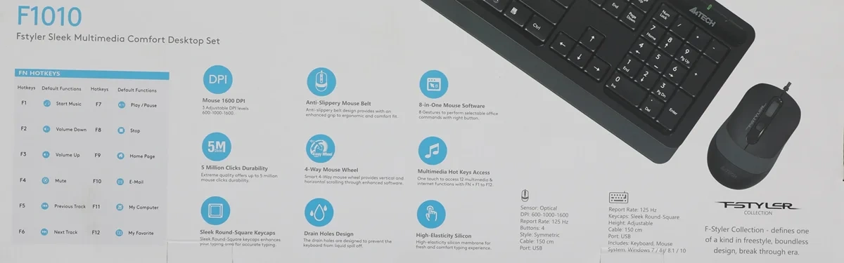 Клавиатура + мышь A4Tech Fstyler F1010 клав:черный/серый мышь:черный/серый USB Multimedia (F1010 GRE
