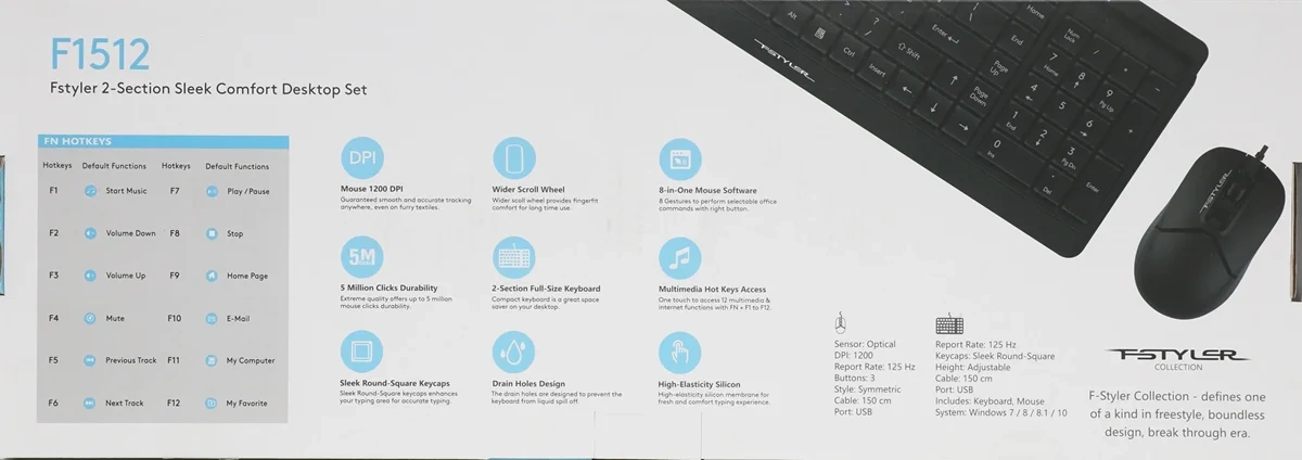 Клавиатура + мышь A4Tech Fstyler F1512 клав:черный мышь:черный USB (F1512 BLACK)