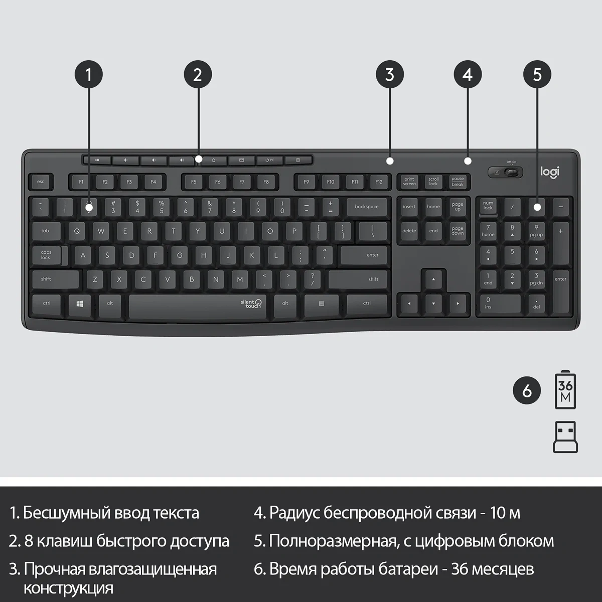 | Особенности клавиатуры | технология silenttouch. регулируемая высота клавиатуры. влагозащищенная конструкция. беспроводное со |