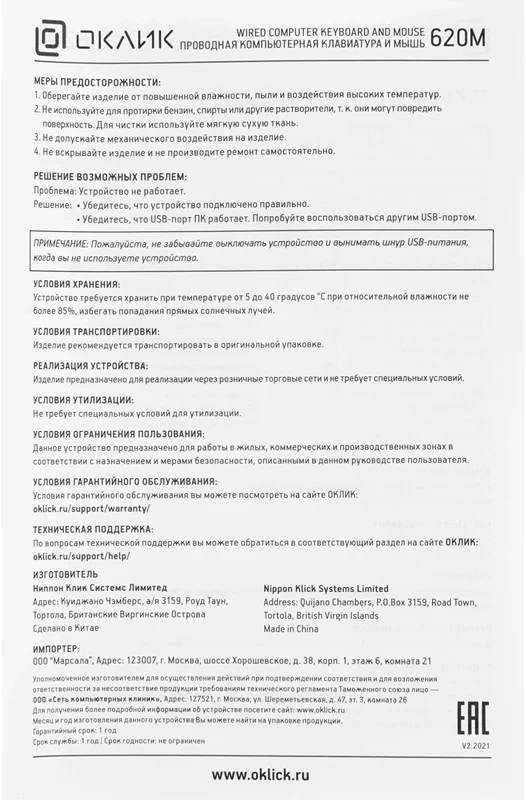 | Комплект поставки | проводная компьютерная клавиатура и мышь 620m |