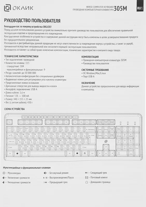| Вес (клавиатуры) | 0.396 кг |