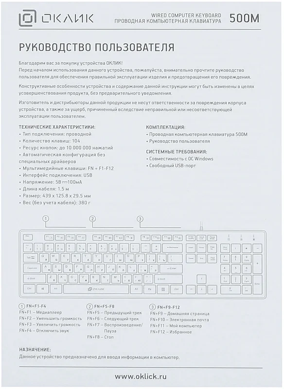 | Особенности | клавиатура slim-дизайна с клавишами островного типа с мультимедийными функциями |
