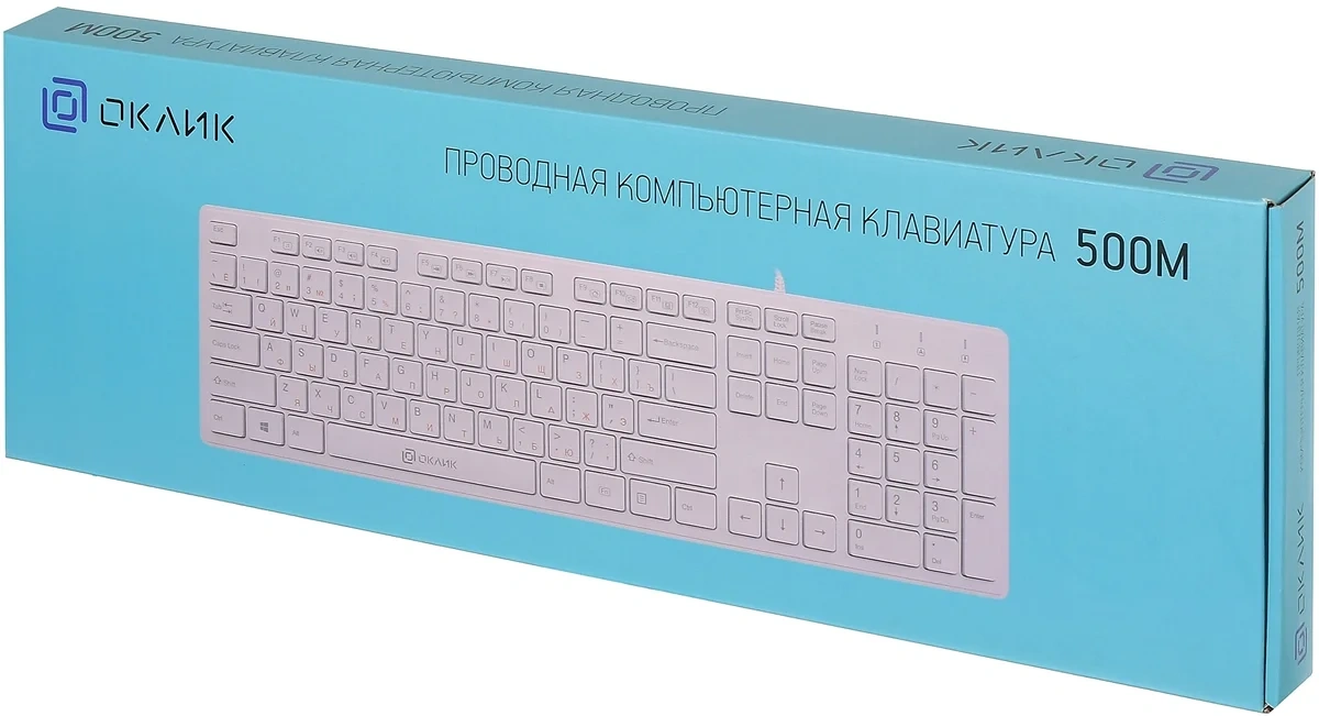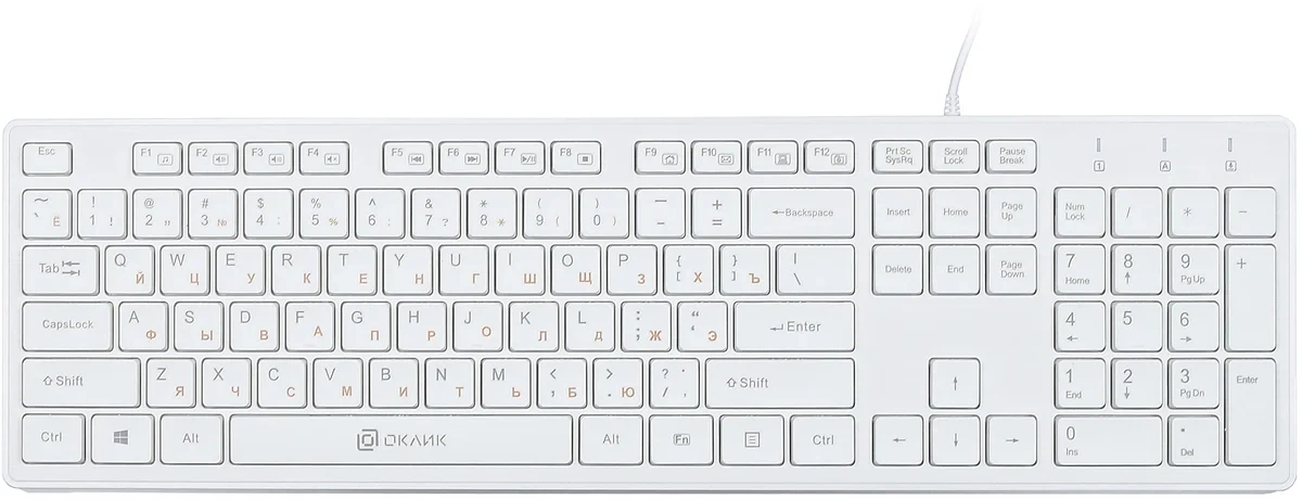 Клавиатура Оклик 500M белый USB slim Multimedia