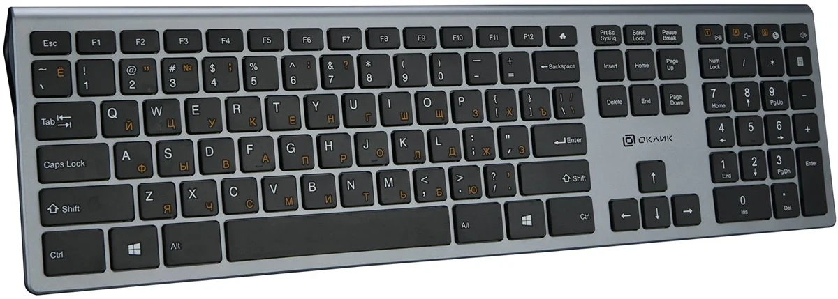 Клавиатура Оклик 890S серый/черный USB slim Multimedia (1784239)
