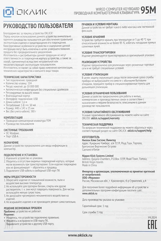 Особенностипроводная офисная клавиатура классического дизайна. ресурс нажатий клавиш - до 10 000 000 раз. влаго