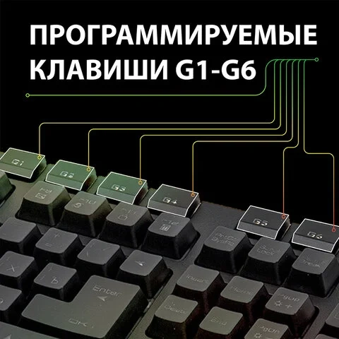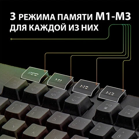 • Клавиши M1-M3 являются встроенной памятью клавиатуры, которые позволяют сохранять настроенные команды клавиш G1-G6.