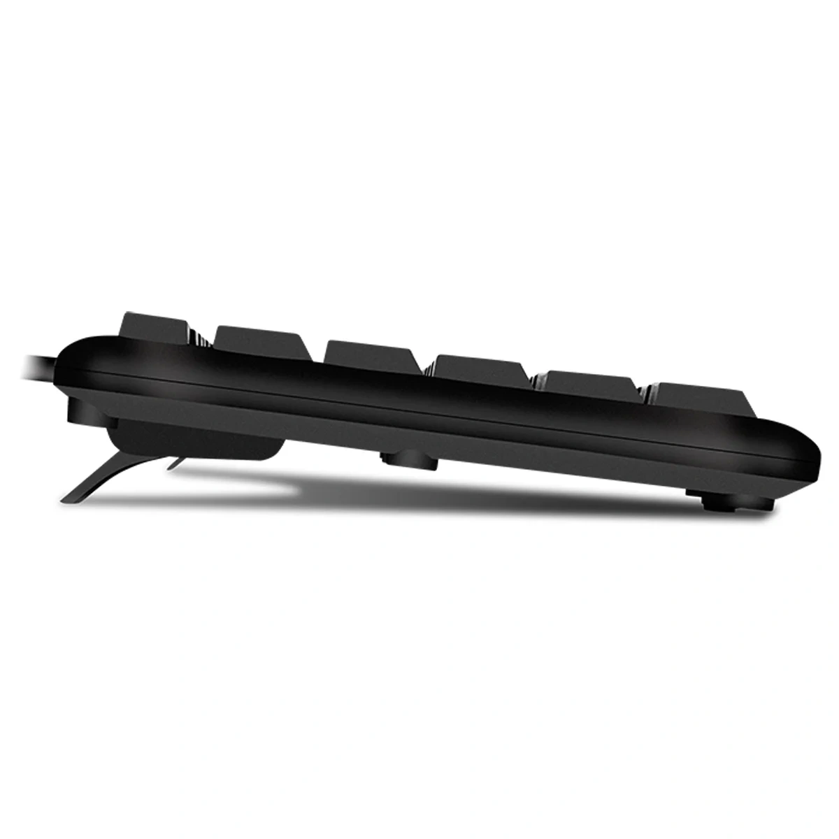Подключение у клавиатуры проводное, кабель надежный и длинный — 2 метра. А еще ее корпус обладает повышенной влагоустойчивостью, что может пригодиться в самых разных ситуациях. Для максимального комфорта использования предусмотрена регулировка высоты с помощью раскладываемых ножек.