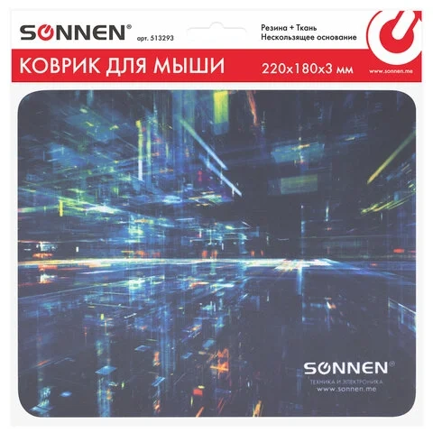 Коврик для мыши SONNEN 'SINGULARITY', резина + ткань, 220х180х3 мм, 513293
