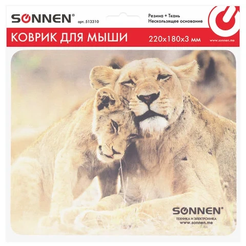 Коврик для мыши SONNEN 'LIONS', резина + ткань, 220х180х3 мм, 513310