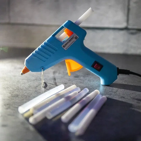 Клеевой пистолет 15 Вт для стержня 7 мм, комплект 20 стержней (10 белых + 10 прозрачных), BRAUBERG,