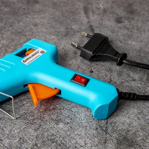 С его помощью можно склеить дерево, пластик, резину, кожу, стекло, металл, ткань, пенопласт, керамику, картон, бумагу, цветы и прочие материалы. Заправляется специальным клеевым стержнем диаметром 7 мм. Клеевой пистолет мощностью 15 Вт работает от сети и дополнительно имеет кнопку отключения, которая позволяет не выключать пистолет из розетки во время паузы в работе. Производительность 6 г/мин обеспечивает непрерывную подачу клея.
