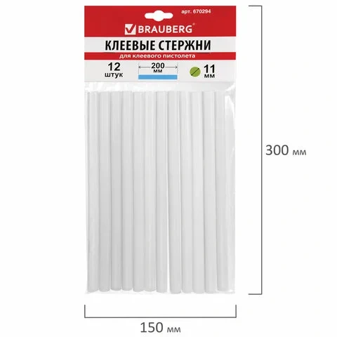 Клеевой стержень Brauberg прозрачный, d=11мм, 200мм, 12шт