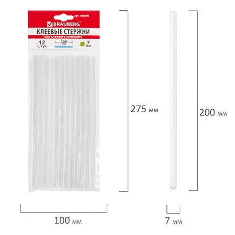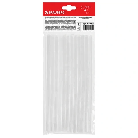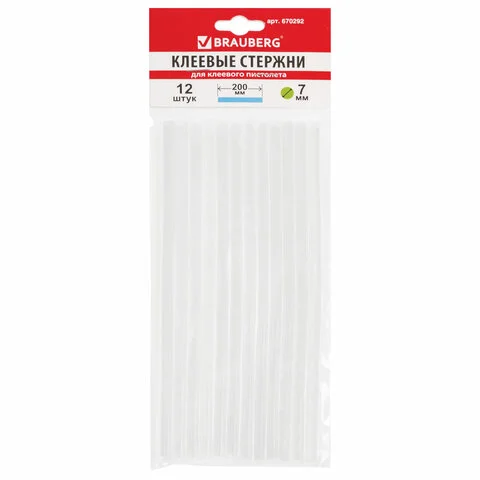 Клеевой стержень Brauberg прозрачный, d=7мм, 200мм, 12шт