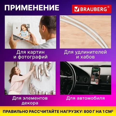 Идеально подходят для фиксации кухонных инструментов, элементов декора, смартфонов (например, в автомобиле). Для крепления удлинителей и хабов, картин, крючков.