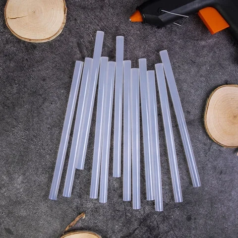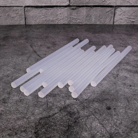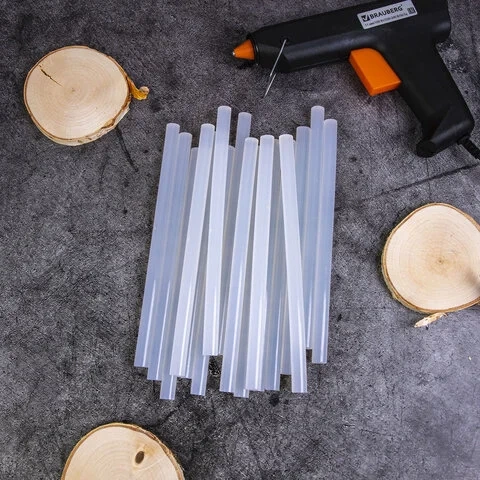 Термоклей прочно и быстро скрепит различные материалы: бумагу, дерево, картон, стекло, пластмассу, металл, кожу, синтетические волокна и т. д. Диаметр клеевого стержня 11 мм и длина 20 см являются самыми востребованными параметрами для выполнения работ. Цвет клеевого стержня прозрачный. В комплект входит 48 клеевых стрежней, обеспечивающих непрерывный рабочий процесс.