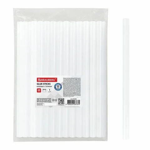 Клеевые стержни, диаметр 11 мм, длина 200 мм, прозрачные, 1 кг (48 штук) BRAUBERG, 671056