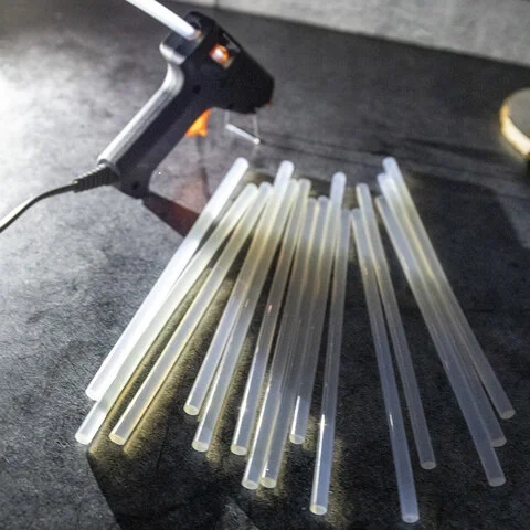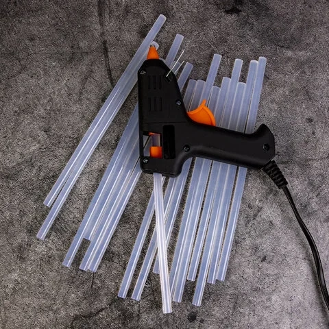 Термоклей прочно и быстро скрепит различные материалы: бумагу, дерево, картон, стекло, пластмассу, металл, кожу, синтетические волокна и т. д. Диаметр клеевого стержня 7 мм и длина 20 см являются самыми востребованными параметрами для выполнения работ. Цвет клеевого стержня прозрачный. В комплект входит 58 клеевых стрежней, обеспечивающих непрерывный рабочий процесс.