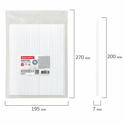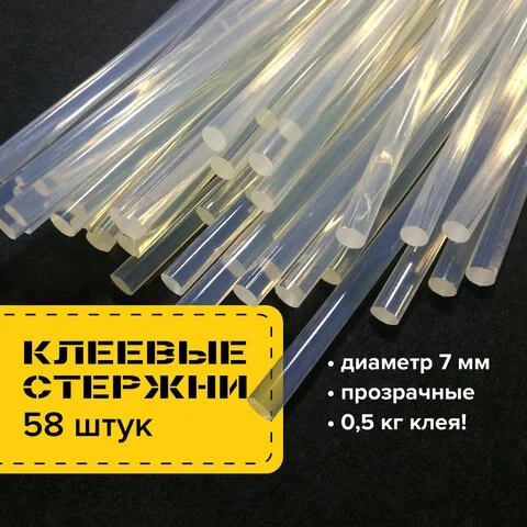 Клеевые стержни, диаметр 7 мм, длина 200 мм, прозрач, 0,5 кг (58 шт.) BRAUBERG, 671054