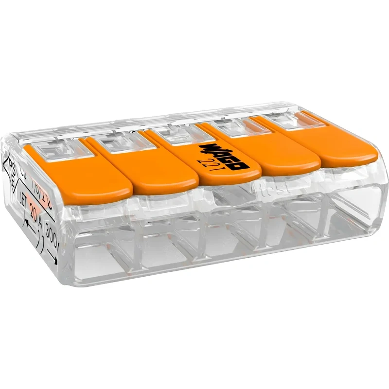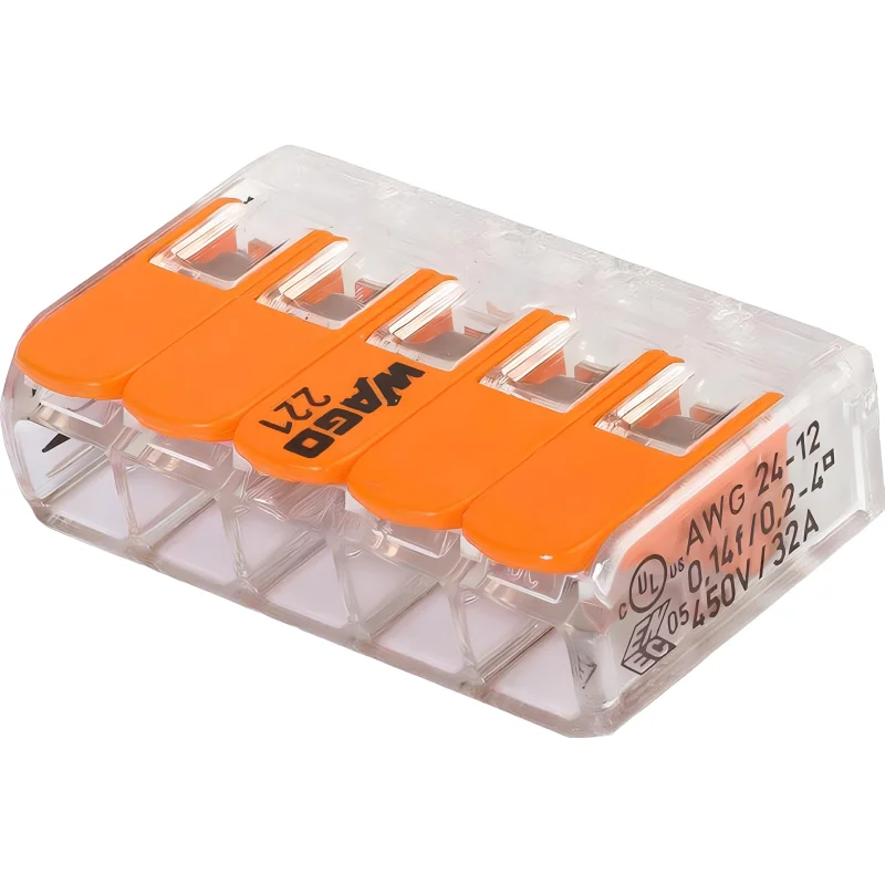 Клемма WAGO 221-415 (5Х4,0мм2 с рычажком) уп.(25шт)