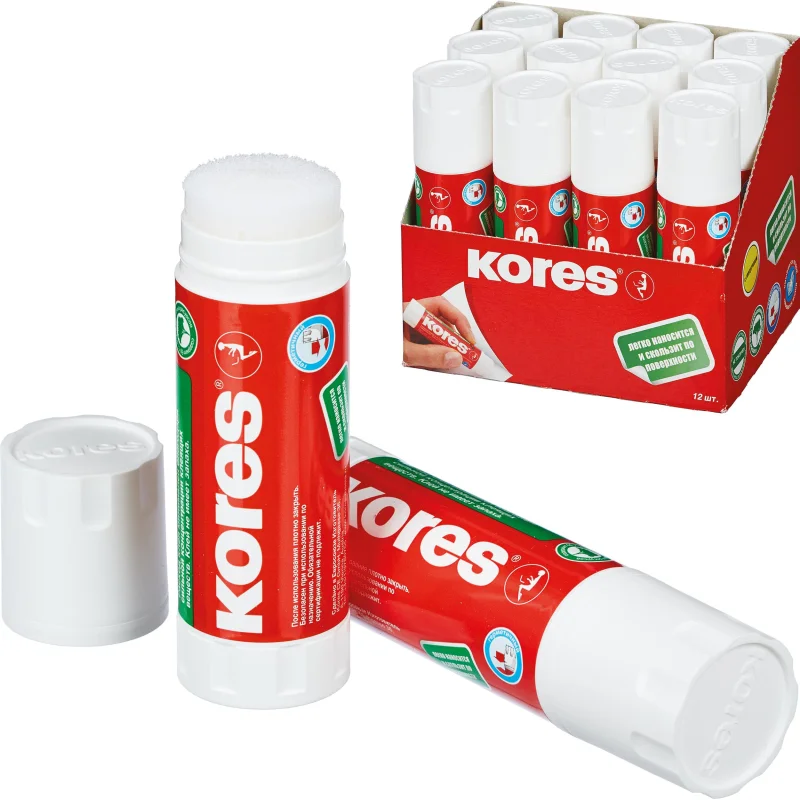 Клей-карандаш Kores предназначен для склеивания бумаги, картона, текстиля. Основа клея обладает мягк...