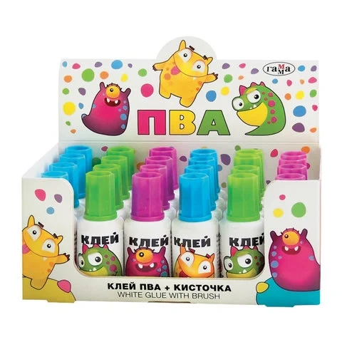 Клей ПВА ГАММА 'Тося, Бося, Зося', с кисточкой, 20 г, 330012Н