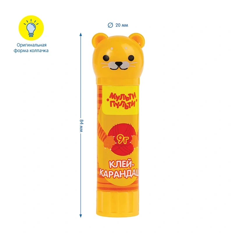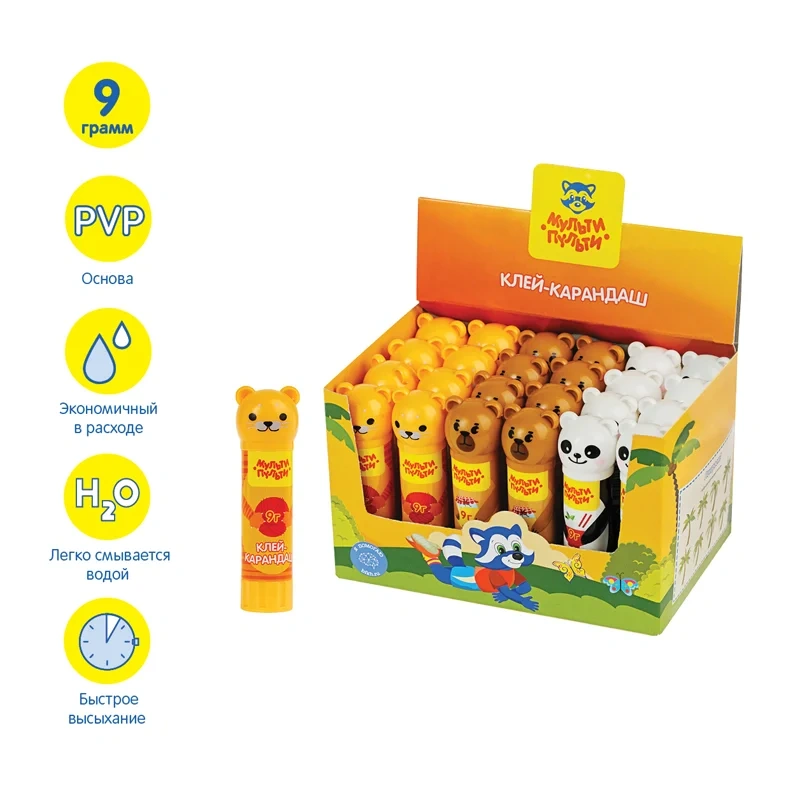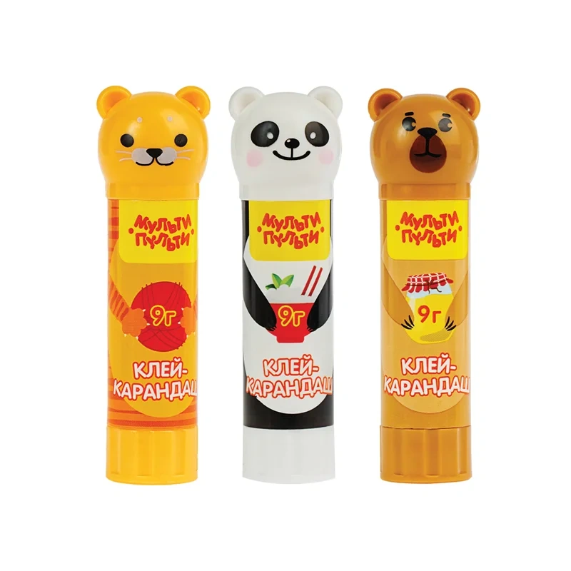 Клей-карандаш Мульти-Пульти 'Зверята: Кот, Мишка, Панда', 09г, колпачок в форме животного