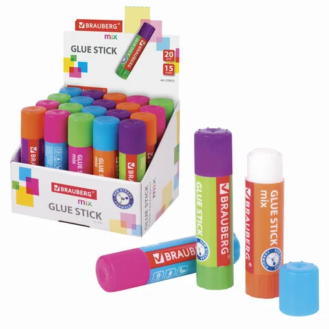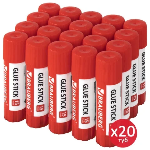 Клей-карандаш 15 г ВЫГОДНАЯ УПАКОВКА, КОМПЛЕКТ 20 штук, BRAUBERG, 229469