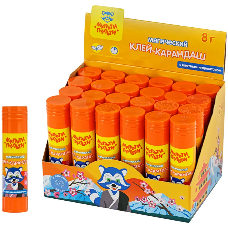 Клей-карандаш Мульти-Пульти 'Енот в Японии', 08г, с цветным индикатором