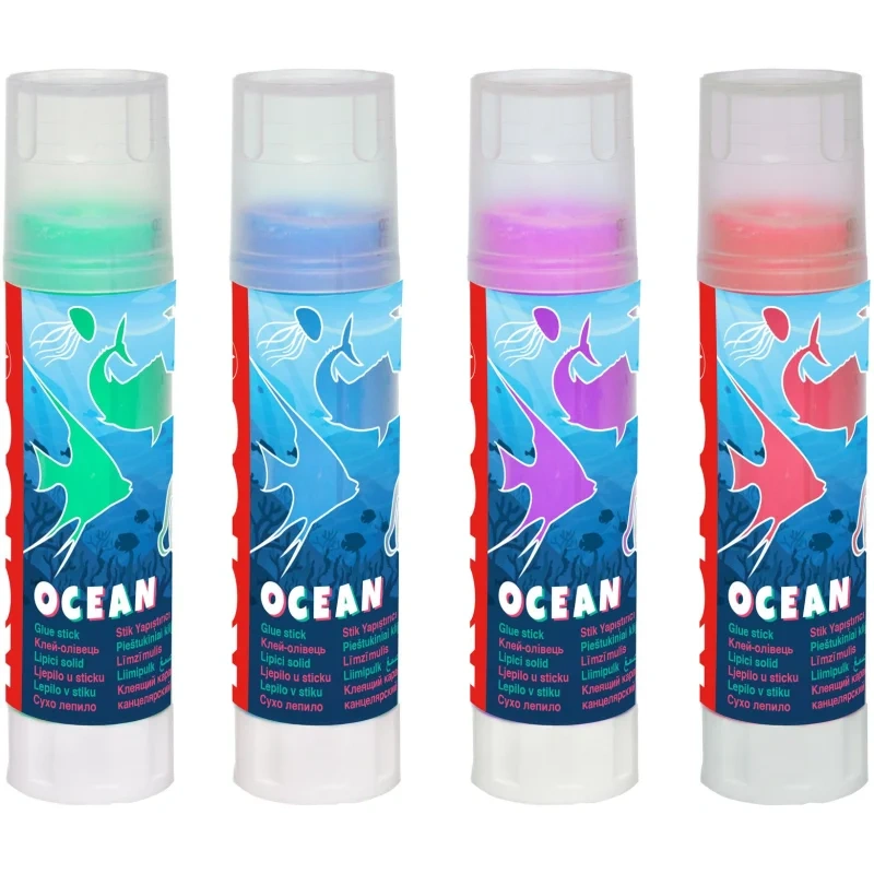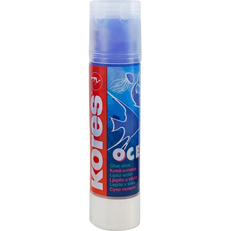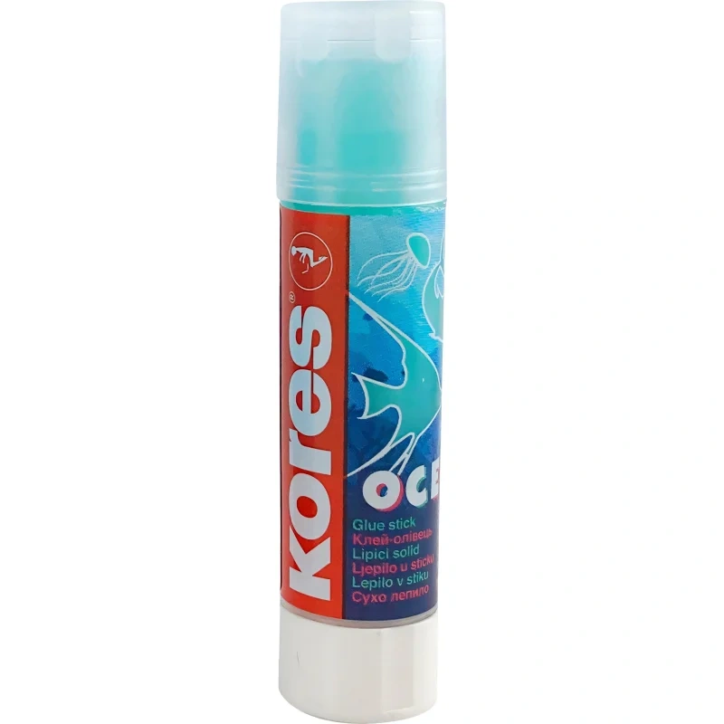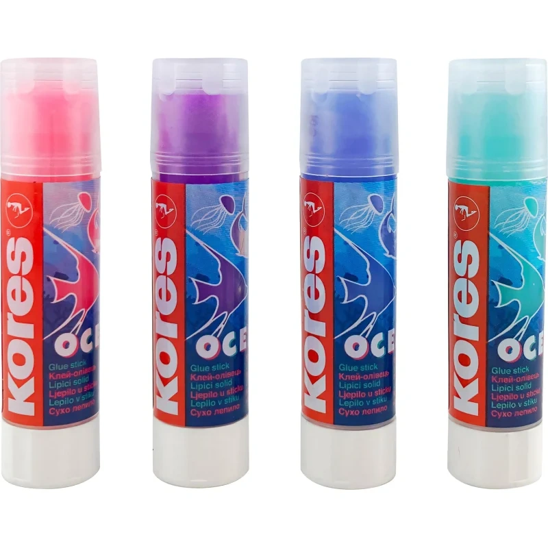 Клей-карандаш 20г Kores Ocean ассорти:прозрачный син, голуб, фиол,розов