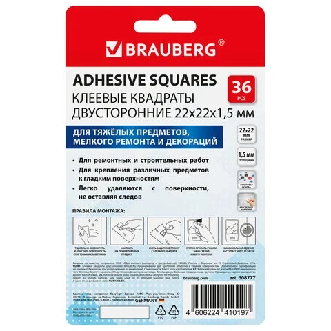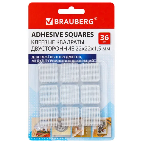 Клеевые квадраты двусторонние, 22х22 мм, акриловая основа, 36 шт., BRAUBERG, 608777