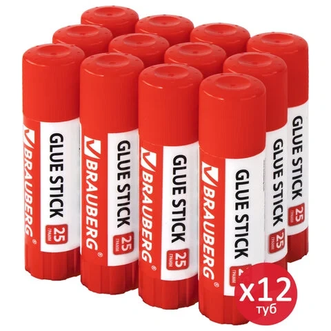 Клей-карандаш 25 г ВЫГОДНАЯ УПАКОВКА, КОМПЛЕКТ 12 штук, BRAUBERG, 229470