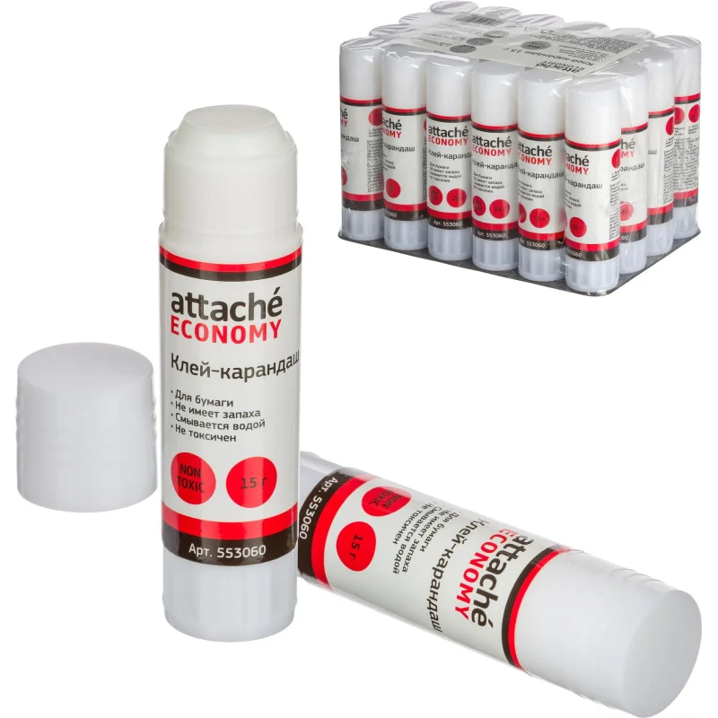 Клей-карандаш обесцвечивающийся BRAUBERG 15 г, 3 штуки на блистере, 229473