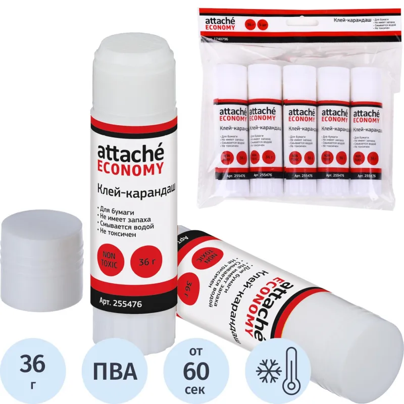 Клей-карандаш 36г Attache Economy 5 шт/уп (255476)