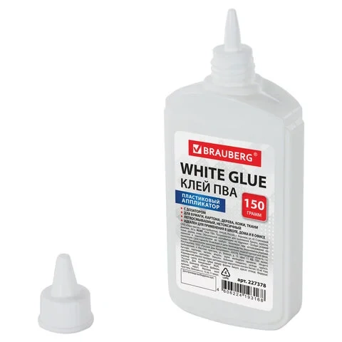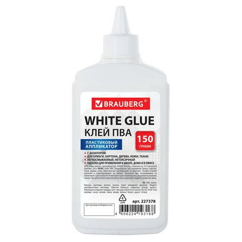 Клей ПВА BRAUBERG (бумага, картон, дерево), 150 г, 227378