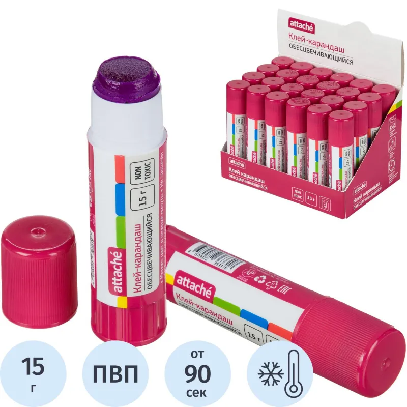 Клей-карандаш 15г Attache хамелеон - обесцвечивающийся