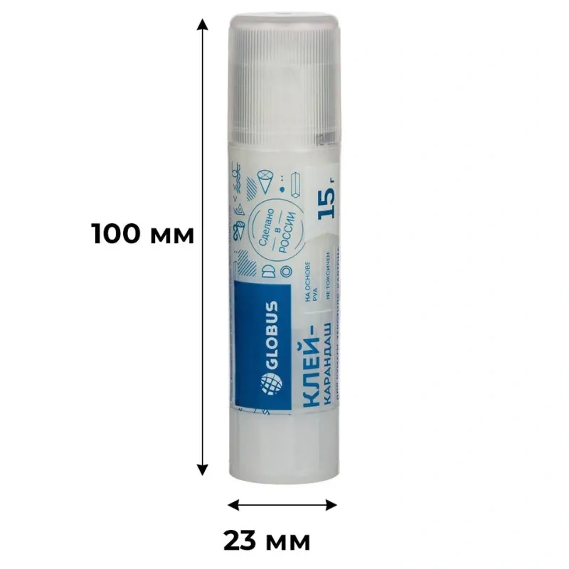 Клей-карандаш «Школьный» изготовлен на PVA основе (сырье BASF). Предназначен для склеивания бумаги, картона. Идеально подходит для детского творчества, школьных работ. Не содержит цветовых пигментов (бесцветный). Срок хранения 18 месяцев. Форма корпуса: круглая. Вес 15 г.